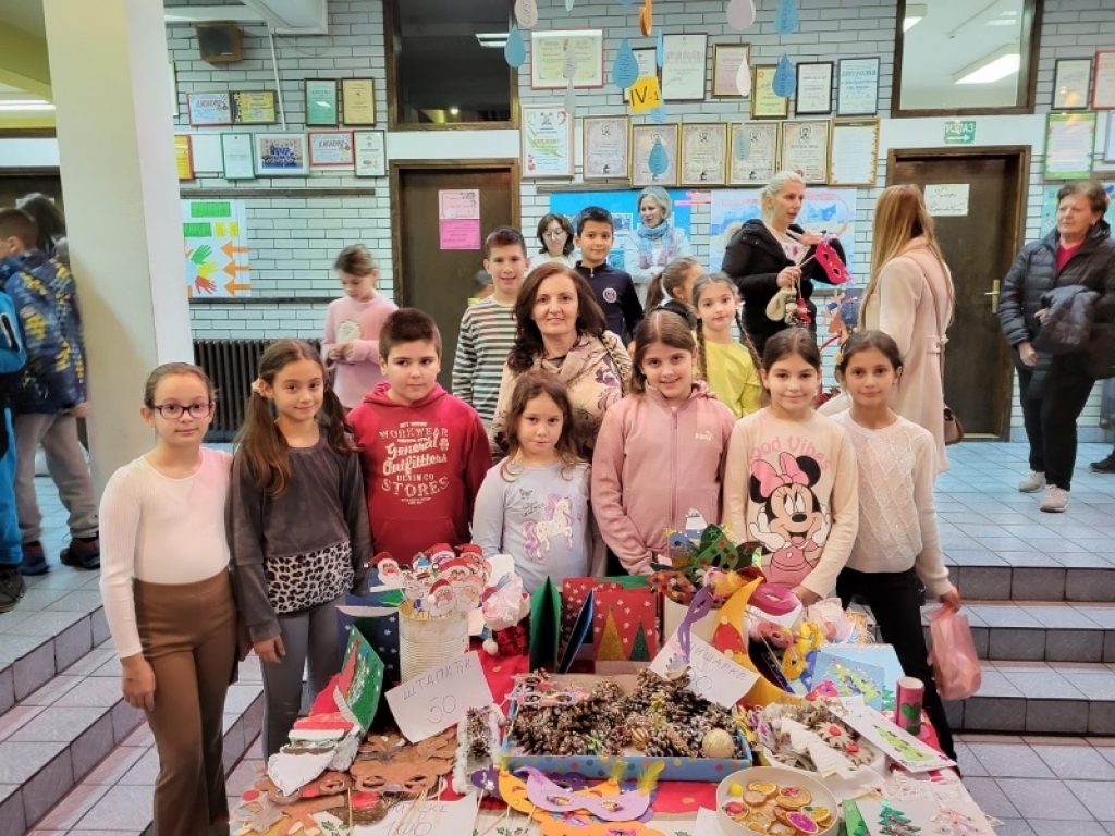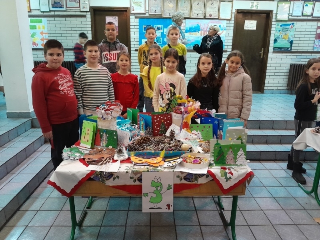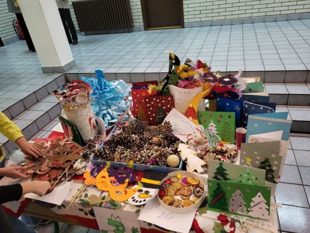 Ученици су продавали прављене новогодишње украсе, честитке, икебане, украсе за столове, јелке... Прикупљена средства биће употребљена за куповину озвучења за школске приредбе и прославе.