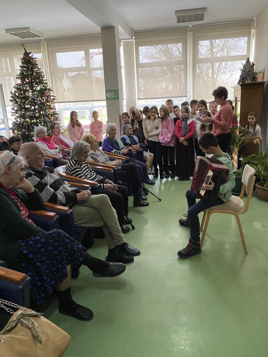Пригодним програмом су им указали поштовање и жељу да им улепшају завршетак текуће године. Песмом, глумом, плесом и рецитацијама су најавили новогодишње празнике. Баке и деке су своје задовољство исказали искреним и топлим аплаузом.