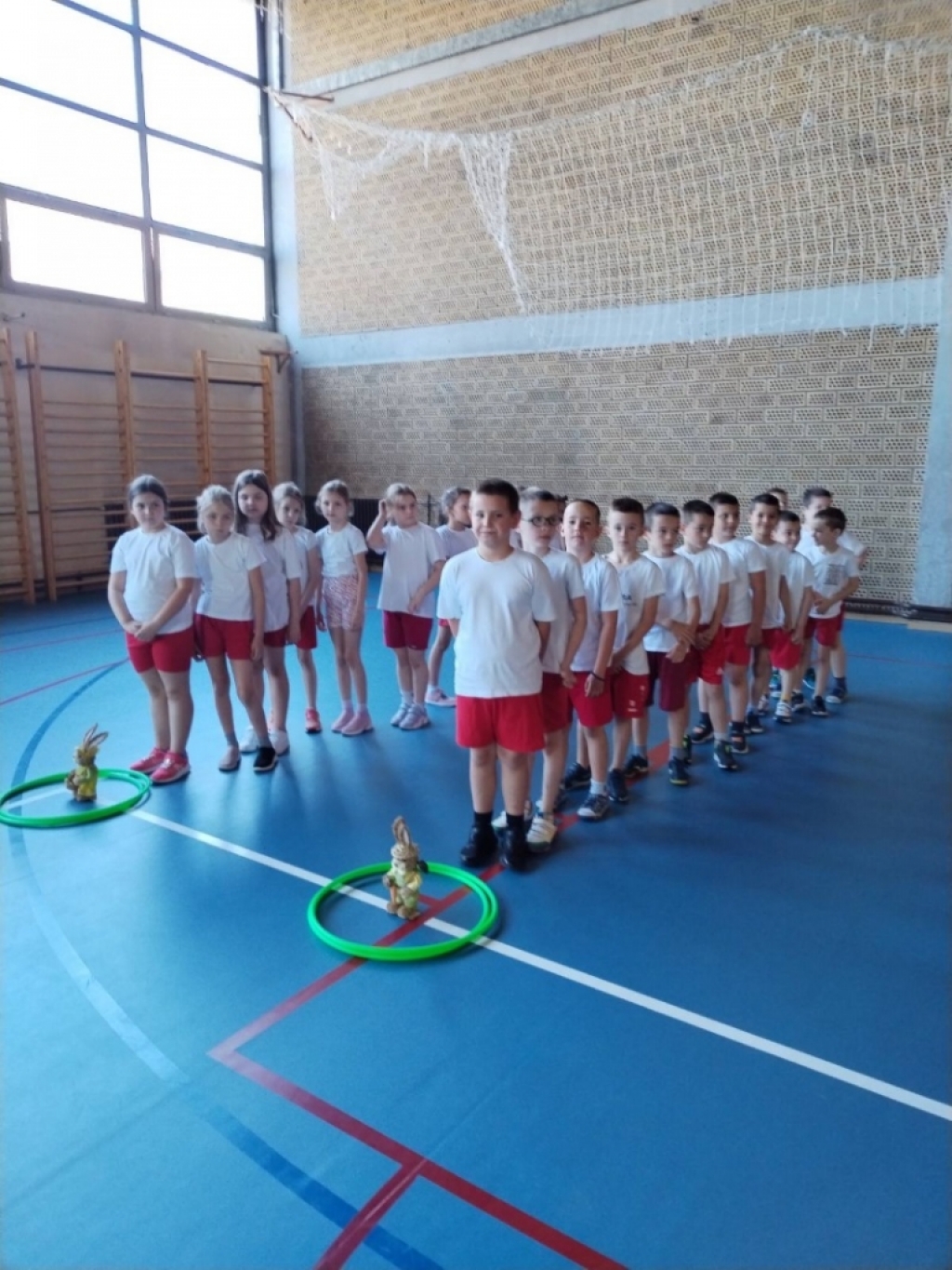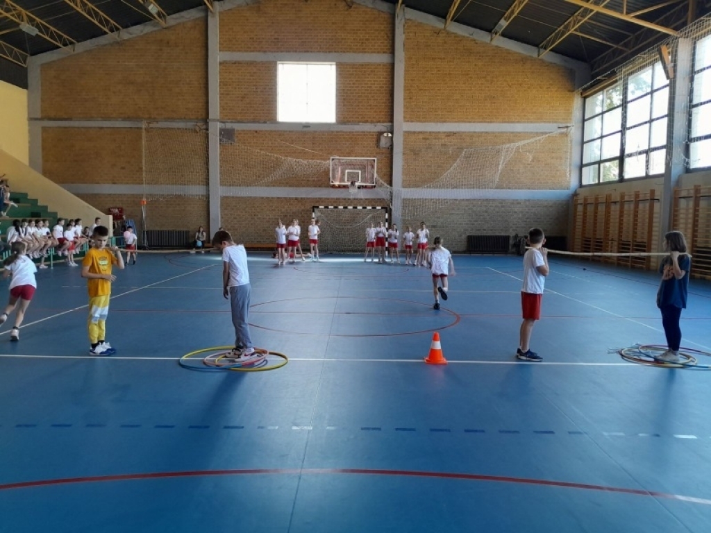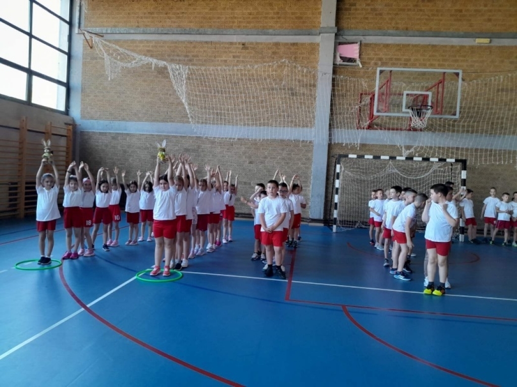 Ученици од првог до четвртог разреда су се такмичили у веселим играма. Прваци су скакали са зекама. Ученици другог разреда су преносили јаја на тацни. Трећаци су сакупљали јаја у корпице прелазећи преко препрека. А четвртаци су преносили балоне држећи их коленима...